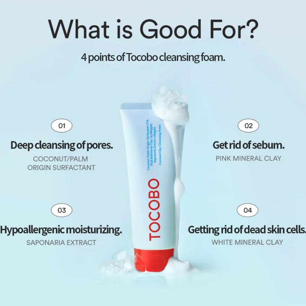 Tocobo Coconut Clay Cleansing Foam combines the purifying properties of coconut and clay to offer a gentle yet effective cleanse. Its unique formulation targets excess sebum and impurities, ensuring that your pores are clean and refreshed. The foam's moisturizing ingredients help prevent dryness, leaving your skin soft and balanced. Ideal for daily use, it also provides mild exfoliation to remove dead skin cells, contributing to a smoother and more radiant complexion.